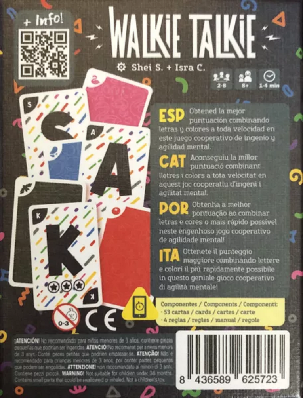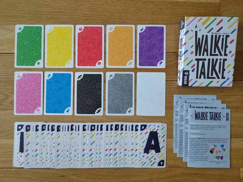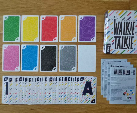 Walkie Talkie is a co-operative game in which players have a very limited amount of time — 30 seconds per player — to get rid of all the cards in their hand, and the more cards that you play, the higher your score.