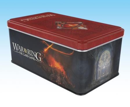 The sturdy metal box also contains 60 clear card protector sleeves in 63x88 mm format for faction cards, and 30 clear card protector sleeves in 80x120 mm for battleground and path cards, and it is the perfect accessory to hold the all-new Shadow cards contained in Against the Shadow, the first expansion set for War of the Ring - The Card Game.