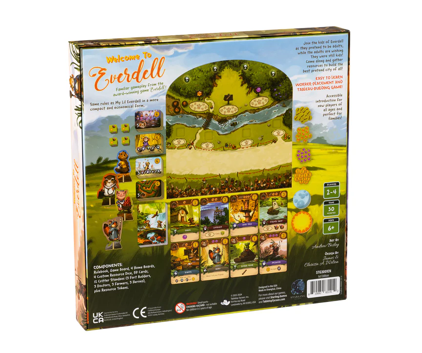 Introducing the best board game for little fans of Everdell, Welcome to Everdell. Join Chip, Sweep, and the other kids of Everdell to build the most spectacular make-believe city anyone has ever built.