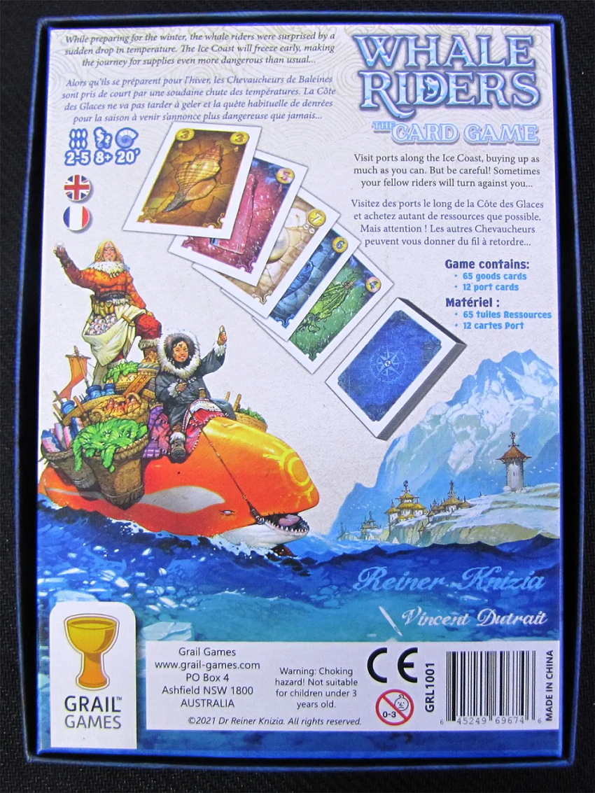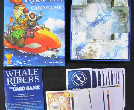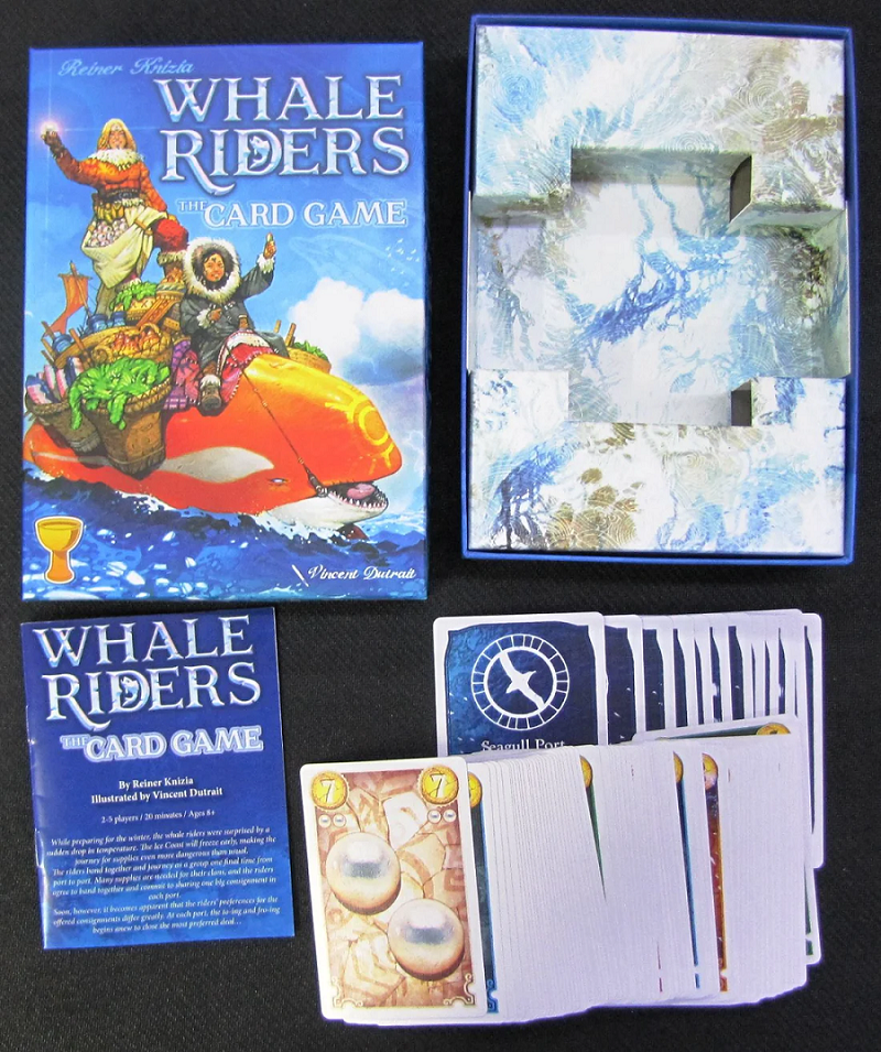 In Whale Riders: The Card Game, you ride alongside others to buy goods along the Ice Coast, sometimes working together with others only to become competitors again when a better proposition comes along. A reimplimentation of Reiner Knizia's classic card game Trendy.