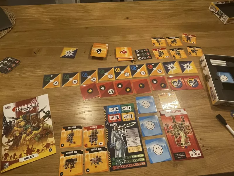 Zombicide: Gear Up is a co-operative flip-and-write game set in the world of Zombicide.