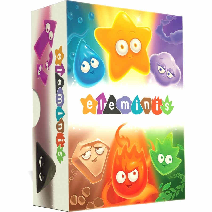 Your goal in Eleminis is to collect one of each of these five eleminis in your row on the table. Players each have five slots available to them, and each slot can hold one card. On a turn, you draw a card from the deck then either play it in a row (if it's a character card) or use it (if it's an action).