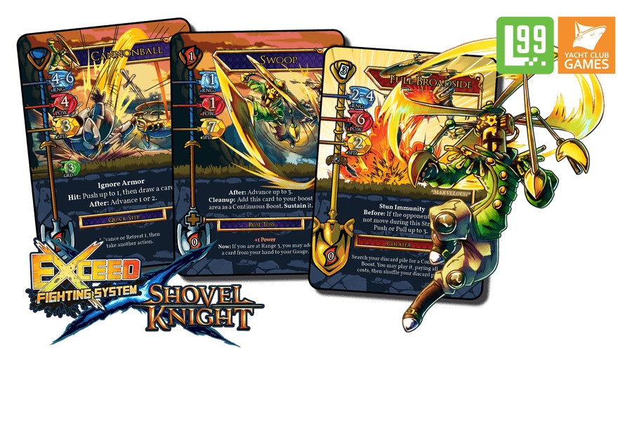 Exceed Fighting System digs up four brand new fighters from the popular video game Shovel Knight. Bring the fast-paced action of head-to-head arcade fighting games to your tabletop. Choose your fighter from an ever-growing roster of diverse characters, each with their own deck of special moves and supers. Play your cards to unleash fireballs, dragon punches, and deadly combos on opponents!