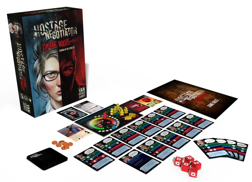 Hostage Negotiator: Crime Wave uses the same "hand-building" mechanism found in Hostage Negotiator that puts cards you purchase directly in your hand for next turn, but it features new Conversation Cards, new Terror Cards, new Pivotal Events, and all new Abductors — each with new rules and new demands! It can be played right out of the box and also expands the original Hostage Negotiator.