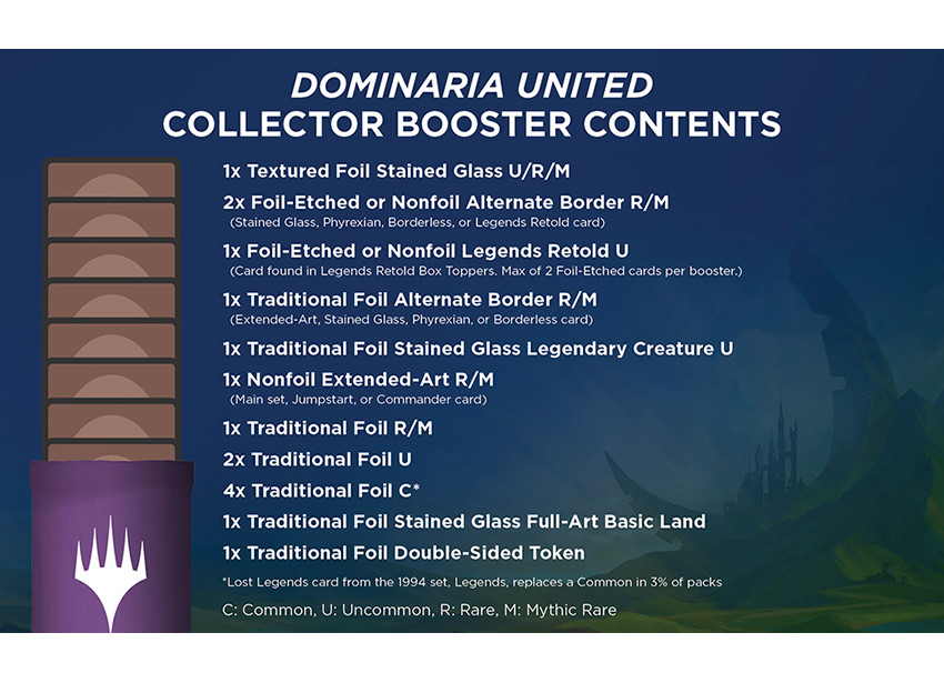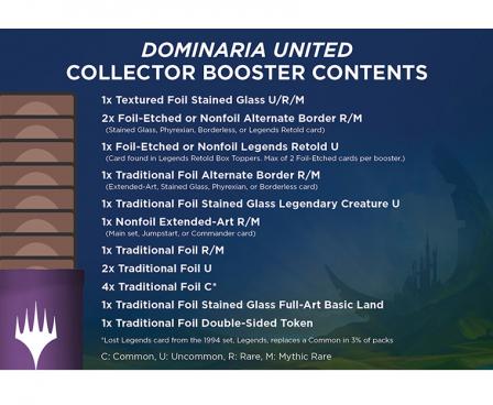 Collector Boosters are the best way to collect the most exciting cards from Dominaria United . . . and from Dominaria's history. While Collector Boosters are always the best place to find rare and mythic rare Booster Fun cards, Dominaria United Collector Boosters are extra special.