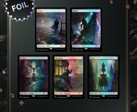 Vampire-ize your deck or collection with this incredible set of Dracula-themed Basic lands. Each card features hauntingly beautiful art by Jonas De Ro, Donato Giancola, Yeong-Hao Han, Andreas Rocha, and Grzegorz Rutkowski—each with their own take on fiction’s most notorious vampire.