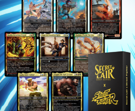 Here comes a new challenger! The legendary World Warriors of Street Fighter are ready to battle in Magic: The Gathering. Up the competition with cards for each of the eight playable characters featured in the original release of Street Fighter II. With these fighters in your deck or collection, Shadaloo doesn’t stand a chance.