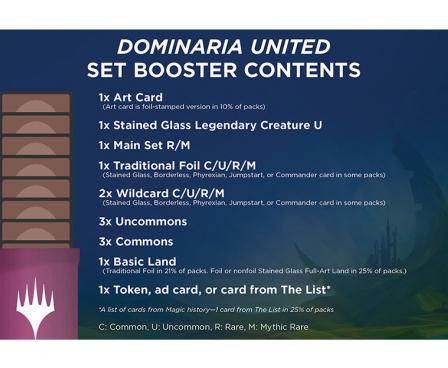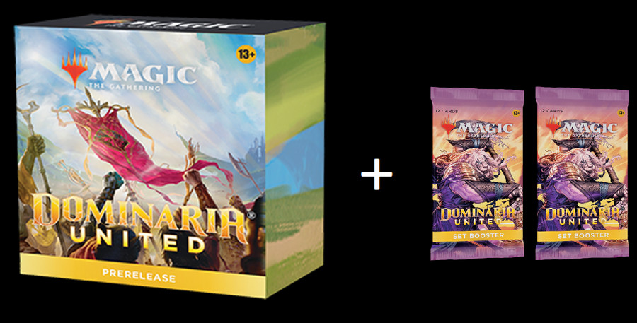 1 Prerelease Pack with punch-out accessories and counters themed to the mechanics of Dominaria United