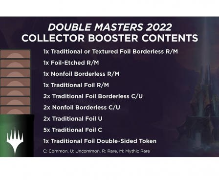 Each Pack contains 15 cards and 1 traditional foil double sided token with a combinations of 4 cards of rarity rare or higher.