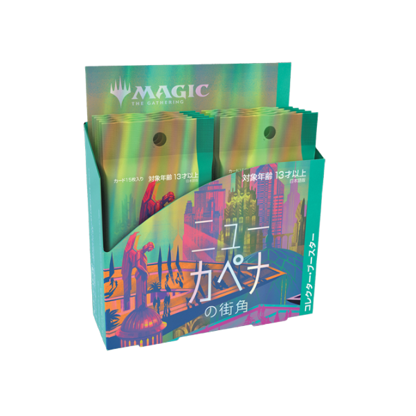 Each factory-sealed display box contains 12 Streets of New Capenna Collector Booster Packs!