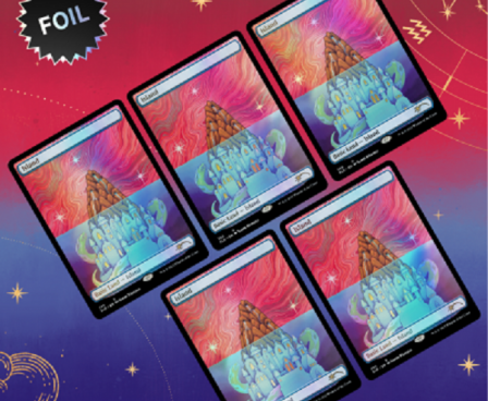 Not your sign? Keep your eyes peeled. We’re adding a new basic land representing a new sign every month—and they’ll all be available until the end of 2022! 5x Foil Full-Art Island