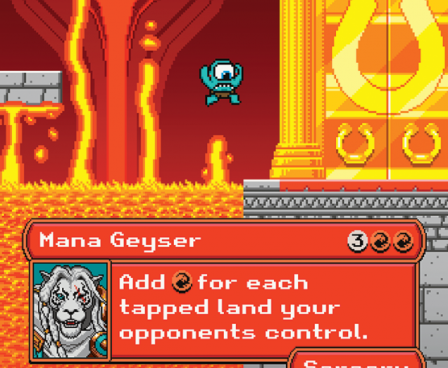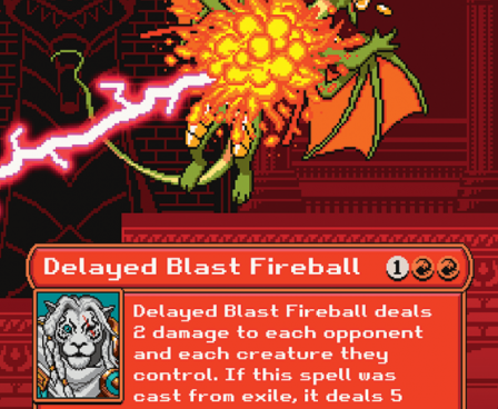 In continuation of our partnership with Extra Life, this side-scrolling, platforming drop features Fblthp braving a lava-filled adventure to battle the big bad boss Nicol Bolas and save the day! With four amazing cards and awesome video-game inspired art, including Fierce Guardianship, this drop is the perfect power-up for your next deck. Plus 50% of the product price will be donated to Extra Life!