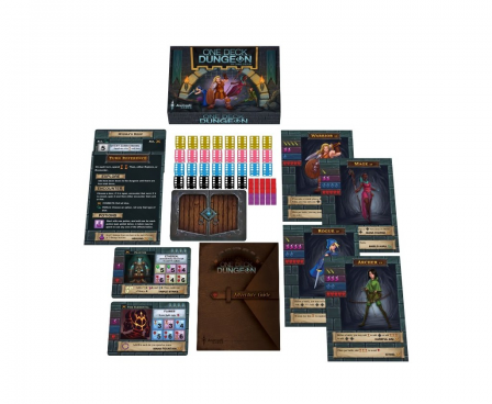 One Deck Dungeon is a card game "roguelike" — a dungeon delve that is different every time, difficult to survive, with a character you build up from scratch. The deck consists of various foes to combat and other perils from the dungeon. Each card, though, depicts both the obstacle to overcome and the potential rewards for doing so. When you defeat a card, you claim it as either experience, an item, or a skill, tucking it under the appropriate side of your character card to show its benefits.