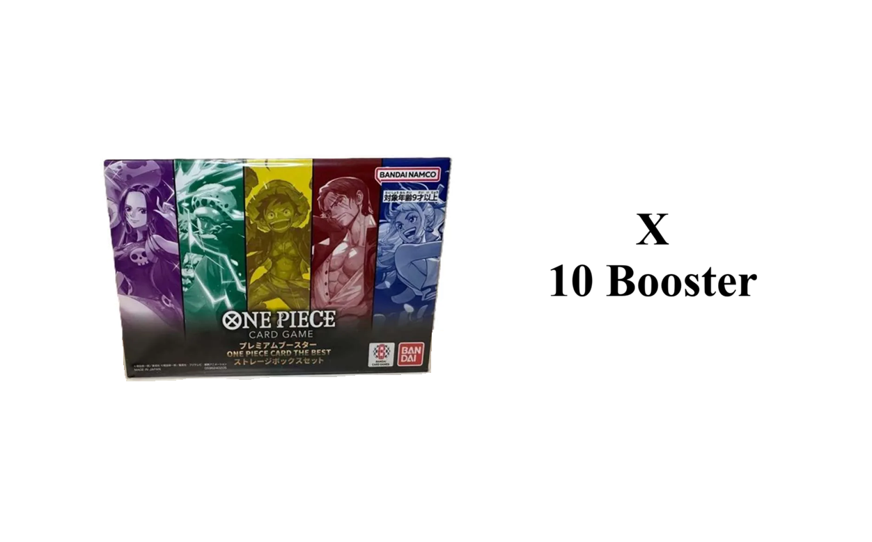 Contents Storage box : 1 pc (5 kinds) Bonus Pack: 2 cards per pack (total 7 kinds) ONE PIECE Card Game Premium Booster ONE PIECE CARD THE BEST [PRB-01]: 5 packs The type of storage box is random and cannot be selected. 2 cards are included at random out of 7 kinds.
