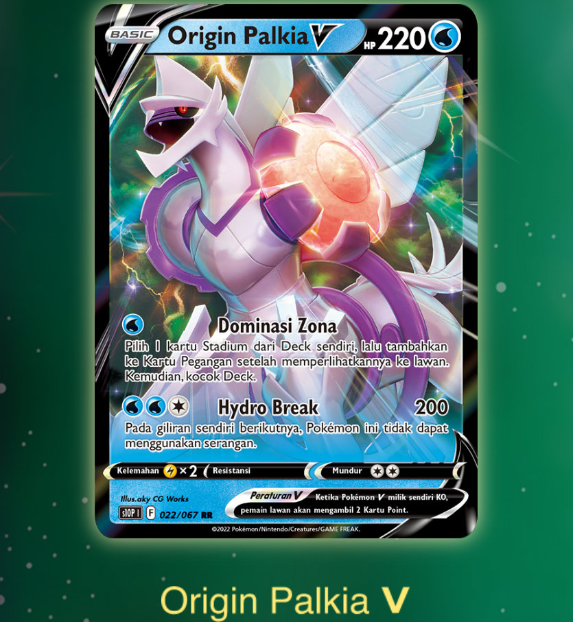Dapatkan Kartu Promo Origin Palkia V untuk setiap pembelian 1 booster box Pokemon TCG Indonesia Penyulap Ruang Booster Box S10P selama masih ada persediaan