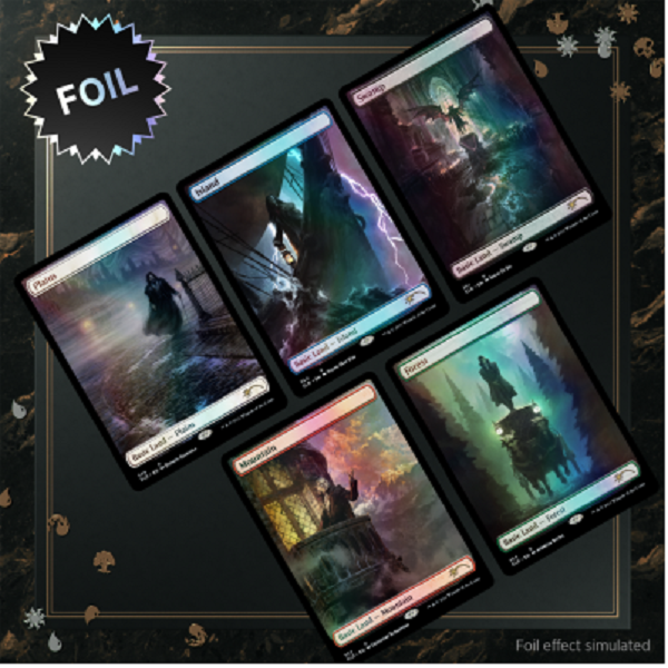 Vampire-ize your deck or collection with this incredible set of Dracula-themed Basic lands. Each card features hauntingly beautiful art by Jonas De Ro, Donato Giancola, Yeong-Hao Han, Andreas Rocha, and Grzegorz Rutkowski—each with their own take on fiction’s most notorious vampire.