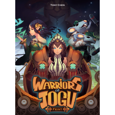 Warriors of Jogu is a two-player card game in which players take turns playing units into one of five locations. The five locations are numbered 2 to 6, and at the end of each round battle happens at only one or two of these locations. Each unit that is in a battle location contributes its strength multiplied by the value of the location, and the sum of the contributions from all of a player's units is their strategy rating for the round. However, each player only knows one of the two battle locations, while their opponent knows the other battle location!