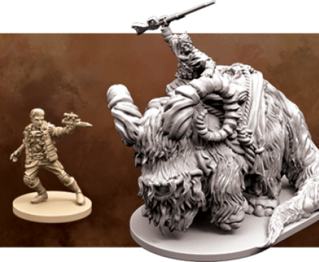The indigenous people of Tatooine, the Tusken Raiders, are known for their lightning-fast raids and ferocious battle tactics as they attack Tatooines moisture farmers. The Tusken Raiders are also known for riding out of the desert on banthas massive, horned beasts that can easily trample those who anger them. With the Bantha Rider Villain Pack, you have the opportunity to swell the forces of the Tusken Raiders from Twin Shadows and ride a bantha into battle in Imperial Assault.