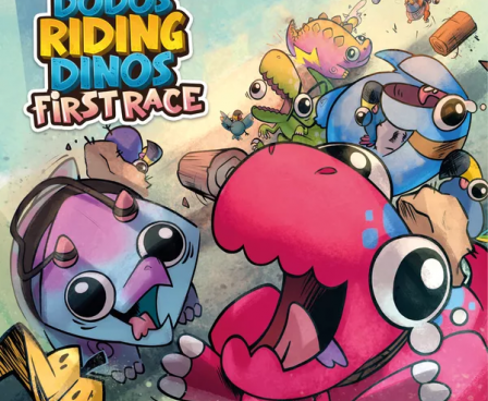Dodos Riding Dinos: First Race is an exciting tabletop racing and skill game where you compete using a team of Dodos and Dinos, known as "Dodino". Launch projectiles at your opponents, test your luck advancing with dice, or hinder others by taking cards from their hand; everything counts to cross the finish line before anyone else!