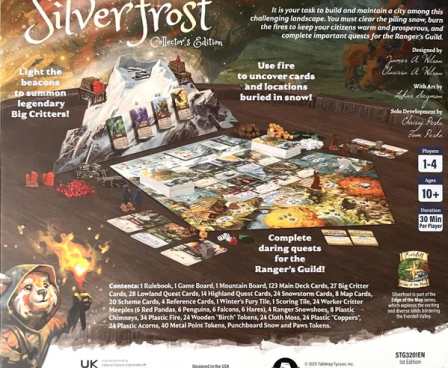 Silverfrost is the next standalone edge of the map series of Everdell. Beyond the snow-capped Spirecrest mountains to the south of Everdell Valley, lies the bold country of Silverfrost. It is your task to build and maintain a city in this challenging landscape. You must clear the piling snow, burn the fires to keep your citizens warm and prosperous, and complete important quests for the Ranger’s Guild.