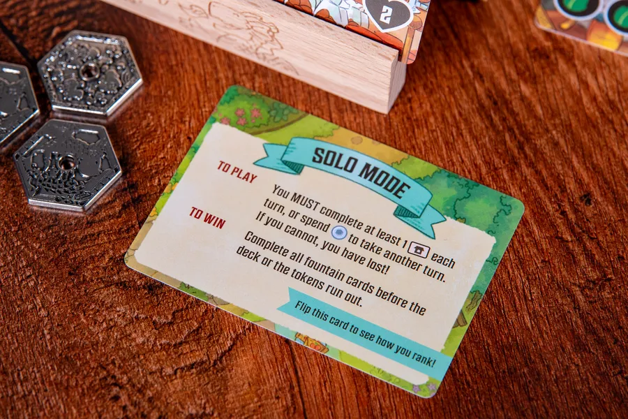 A Deluxe version of Flamecraft Duals which includes plastic cards, metal coins, a lockable box that unfolds to become the playing board, a Fountain miniature and a premium velvet draw bag.