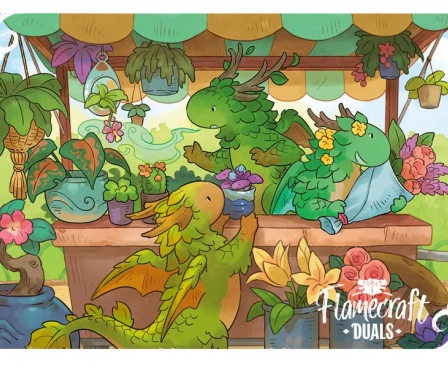Ever wondered what the dragons of Flamecraft do on their lunch break? Play Flamecraft Duals, of course! Set in the world of Flamecraft, Duals is a two-player travel-friendly game of pattern-making and quick, puzzly fun! You will meet the artisan dragons again with new powers, and this time the challenge is to get your dragons in a row. As you draw dragons, you might get lucky and come across a rare dual-colored Hydragon, with double the artisanal skills! As you play, the board will fill up with adorable dragons, stacking and soaring across the table, and you will work to fire-up their abilities, make matches, and complete shop cards.