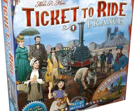 Ticket to Ride Map Collection: Volume 6 ''" France & Old West includes a double-sided game board that features France on one side and the western half of the United States on the other.