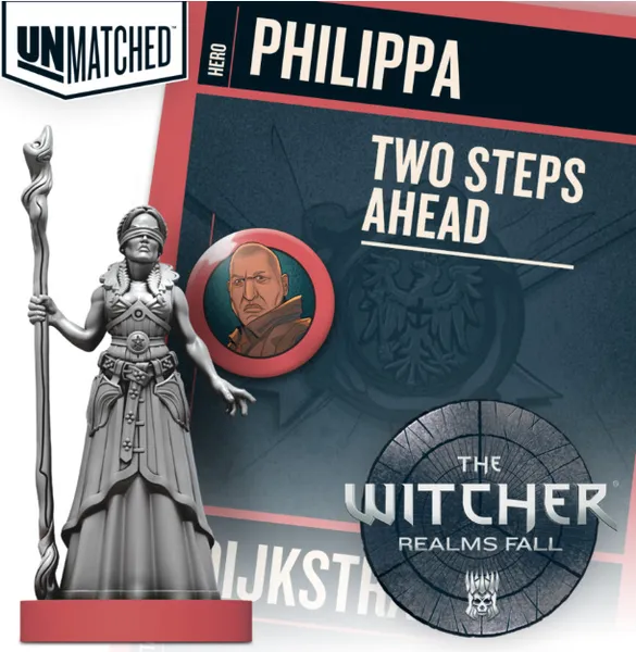 Yennefer and Triss introduce an Unmatched first: You choose who is the hero and who is the sidekick, with different special abilities for each. Philippa is a powerful sorceress and schemer, who never runs out of cards.