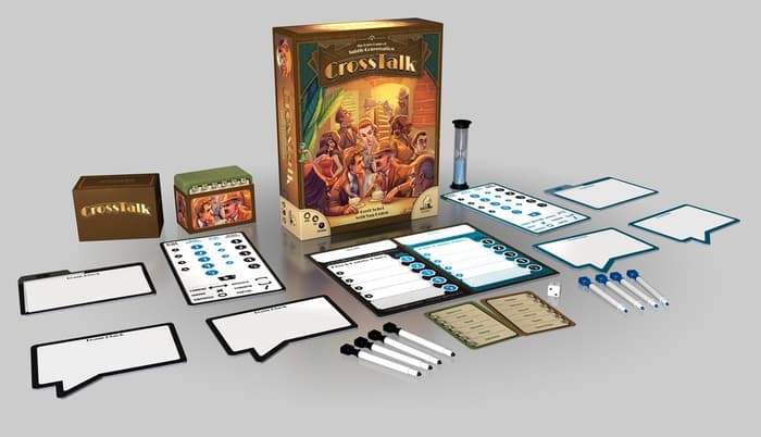 CrossTalk is the party game of subtle conversation in which two teams race to guess secret keywords. Each round, teams select a clue-giver, and those clue-givers are given knowledge of the same secret keyword. The goal of the clue-givers is to help their teammates guess this keyword before the other team.