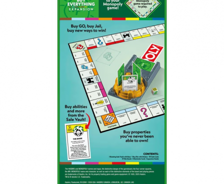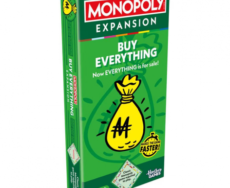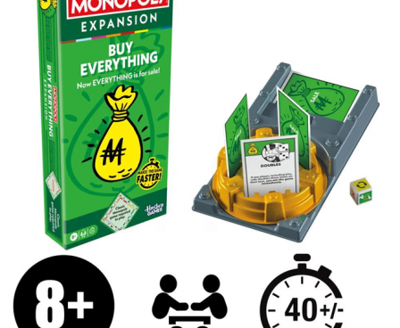 Mr. Monopoly has opened the Sale Vault, and there’s more for sale than ever before! The Monopoly Buy Everything Expansion brings a fresh twist to the Monopoly game and takes half the time to play. Just add this expansion to the classic Monopoly gameboard, and everything is for sale. (Classic Monopoly game required to play.