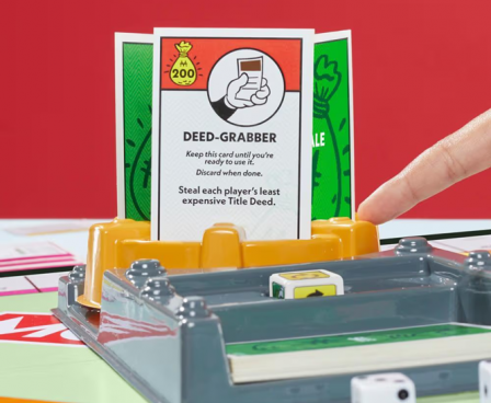 Players can buy every space (including Go to Jail!), and they can roll the Buy die to purchase more ways to win and abilities from the rotating Sale Vault. When all properties are owned, the richest player wins — or a player can win instantly by completing an instant-win Sale card!