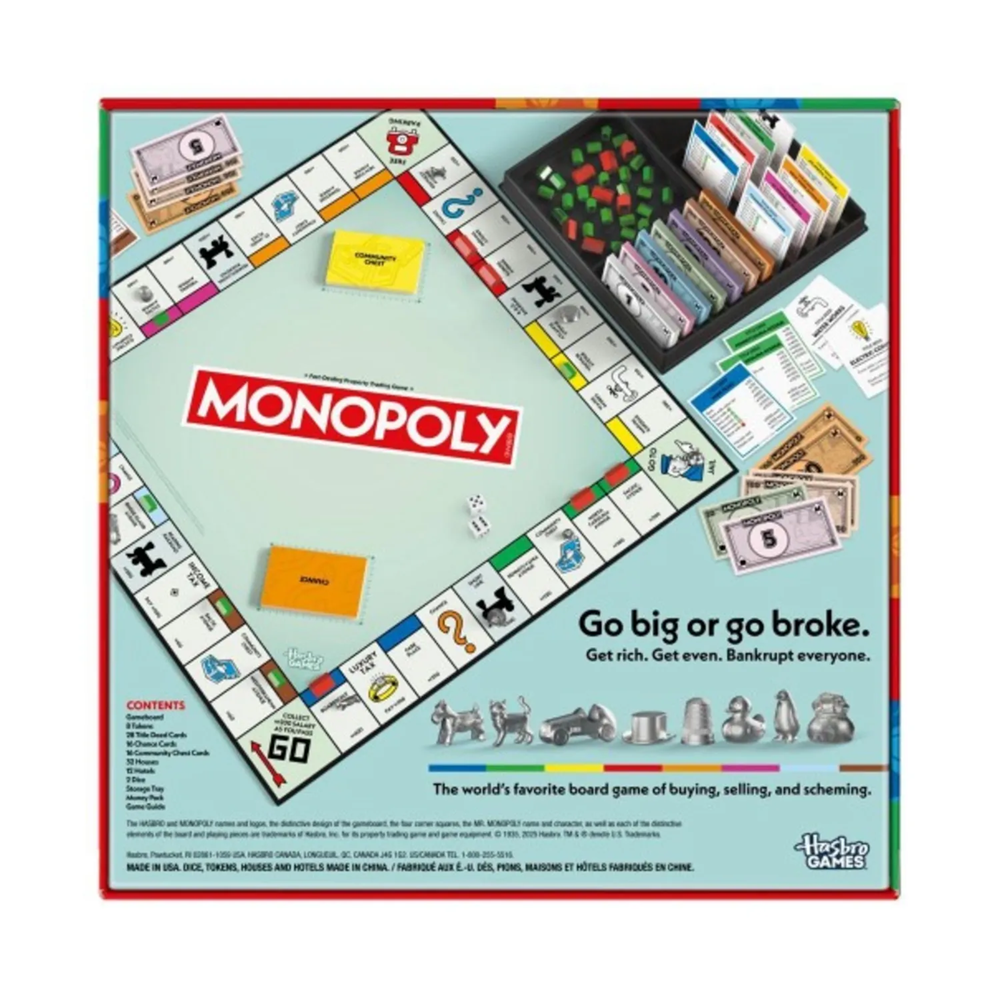 Go big or go broke in the Monopoly board game! In this edition of the fun family game, experience the classic gameplay fans know and love, plus improved features. We’ve included a sleek storage tray to keep cash, cards, and components organized. We’ve also increased the size of the tokens, houses, and hotels from those in previous editions for easier handling. Players move around the board buying as many properties as they can. The more they own, the more rent they’ll be able to collect from others. The last one with money, when all other players have gone bankrupt, wins! Looking for fun games for game night? This family board game for kids and adults is an exciting choice. Monopoly games and family games for kids and adults are great kids gifts, too.