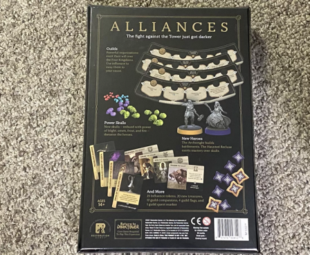 The Alliances expansion offers new rules and components to add further depth and variety to Return to Dark Tower. It includes two new heroes, who can be used in any game. The Archwright fortifies buildings to protect the kingdoms; the Haunted Recluse dabbles in forbidden lore to powerful effect. Influence is a new resource that can be used to form alliances with powerful guilds or to thwart the capricious whims of the nobles. It also features new treasures and allies with more intricate abilities for experienced gamers.