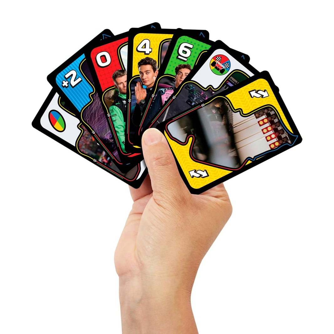 ​The UNO game players love races onto the scene with iconic images from the world of F1 racing and its celebrated drivers!