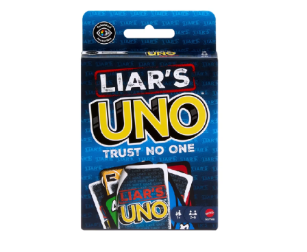 Liar's UNO is designed for players 7 years old and up and makes a fun gift for the sneakiest playing card fans!