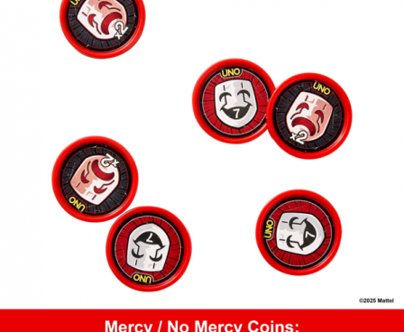 The Mercy Coin lets a player draw a whole new hand, and the No Mercy Coin doubles the penalty of any card played!
