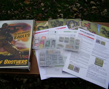 Band of Brothers is a fast playing game of squad level combat in WWII. It covers the exploits of the 101st in their battles from D-Day through the Bulge. The rules are very simple (no combat charts are needed) with very few exceptions to remember and yet the game is meant to be all encompassing and will include infantry, tanks, and artillery.