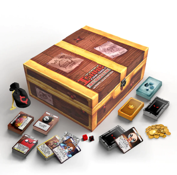 The Binding of Isaac: Four Souls – Ultimate Collector's Edition contains the base game, the Requiem and Four Souls+ expansions, and an extra-large box for all cards.