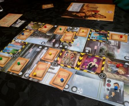 Players begin the game with the same hand of Agents (tiles) and will take turns placing these tiles in the open spaces of the various locations on the board. At the end of each round players check each location to see which player gains the reward for that location.