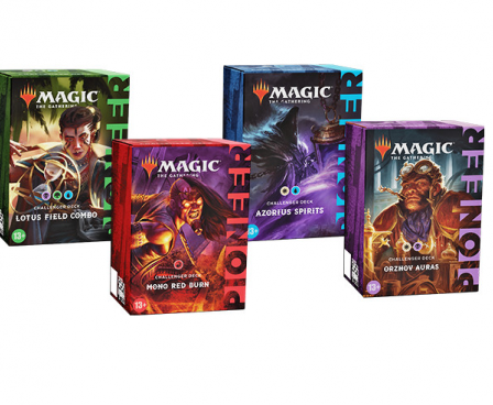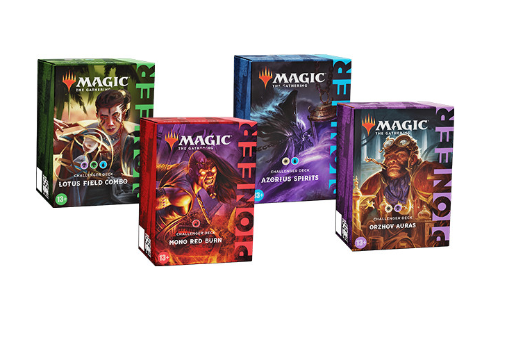 Release date 15 October 2021 MTG Pioneer Challenger Decks 2021 Four different 75-card decks—each featuring a different strategy—are ready to play out of the box. Each Challenger Deck comes with a complete 60-card main deck and a 15-card sideboard, perfect for the next event at your local game store. These decks are intended to be playable and competitive at a local level, ready to challenge friends and foes alike. All cards have been previously printed in Pioneer-legal sets and are legal in the Pioneer format. This Decks contains of : - Azorius Spirit - Mono Red Burn - Lotus Field Combo - Orzhov Aura