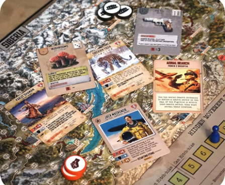 Siberian Manhunt is an asymmetrical hidden movement game for two players. One player takes the role of a U-2 spy plane pilot who has crashed behind enemy lines and must escape across the border into China. The fugitive must use their wits to navigate the dangerous landscape, survive encounters with predatory animals, and avoid starvation and hypothermia, all while being pursued by the KGB. Do they dare enter towns, risking detection by the local authorities, or will they strike out into the wilds and rely on their wilderness survival skills to stay alive?