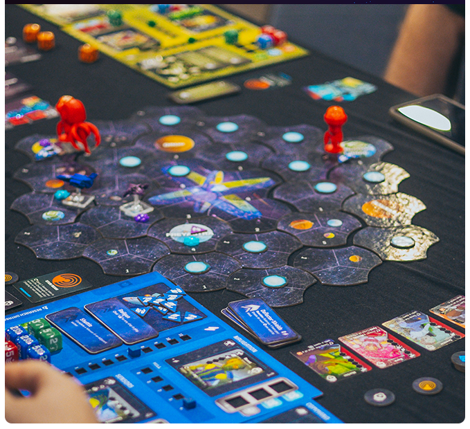 Your objective is to be the most renowned and respected Crew by gaining the most points. You gain points by increasing your reputation with the Council Worlds, promoting your Crew, researching Anomalies, recruiting Freelancers, and completing Missions. All of these brave endeavors will score you points and lead to your victory. Running your starship entails assigning crew to different stations on your ship board, which allows you to assign dice to those stations to activate ship actions. Move and explore space, encounter raiders, face anomalies, and use your crew abilities and skills to fulfill mission requirements and activate their bonuses. Manage your ship's power, weapons, and shields, and recruit and promote crew members to enhance your ship and achieve objectives to ensure your side prevails.