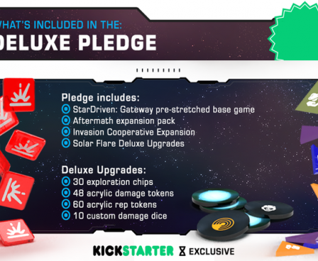 In StarDriven: Gateway, 1-4 players each control their own starship and crew while determining the fate of distant colonies near an ancient alien gateway. The game can be played competitively, co-operatively, or in solo mode depending on which episode you select at game set-up.