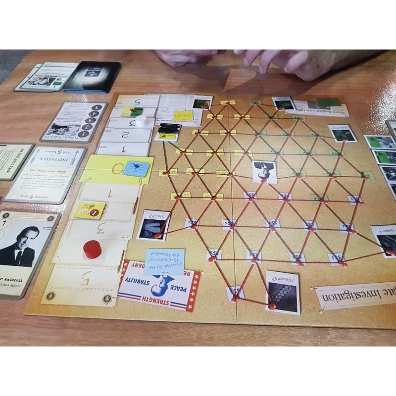In the two-player game Watergate, one player represents the Nixon administration and tries not to resign before the end of the game while the other player represents The Washington Post and tries to show the connections between Nixon and some of his informers.