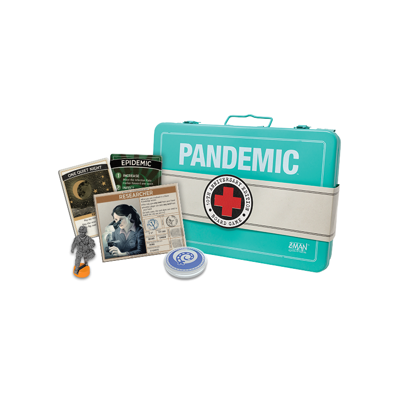 This is the Deluxe Pandemic 10th anniversary edition, comes with metal case, unpainted miniatures and deluxe component!