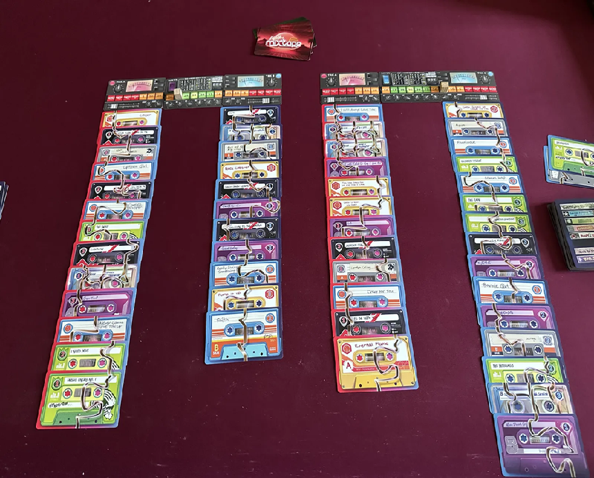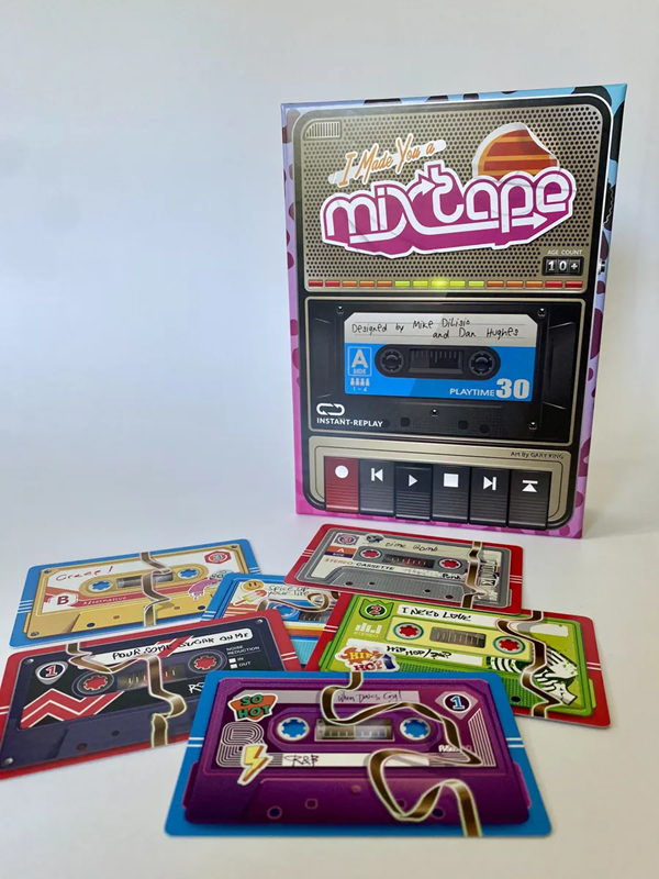 “I Made You a Mixtape” is a I-split-you-choose card game where you will be competing with the other players to make the best compilation possible out of an album collection. Your tape will be judged on how well it’s themed, how the tracks flow with each other, and the balance of lengths between side A and side B.