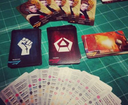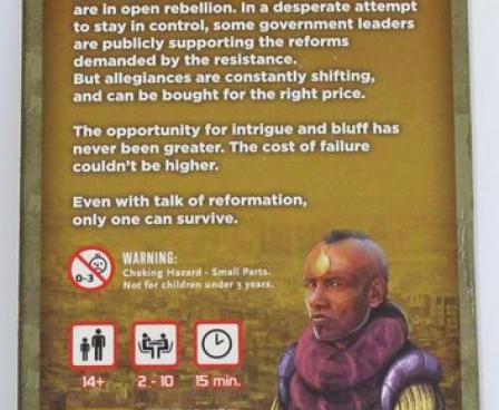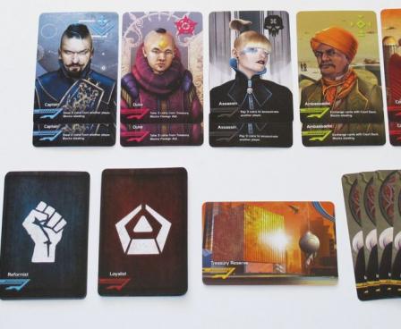 Coup: Reformation, an expansion for the original version of Coup: City State from La Mame Games, adds new cards to the game and rules for factions and team play that increases tension in the early stages for four or more players and (thanks to 15 additional character cards) allows Coup to be better played with up to ten players.